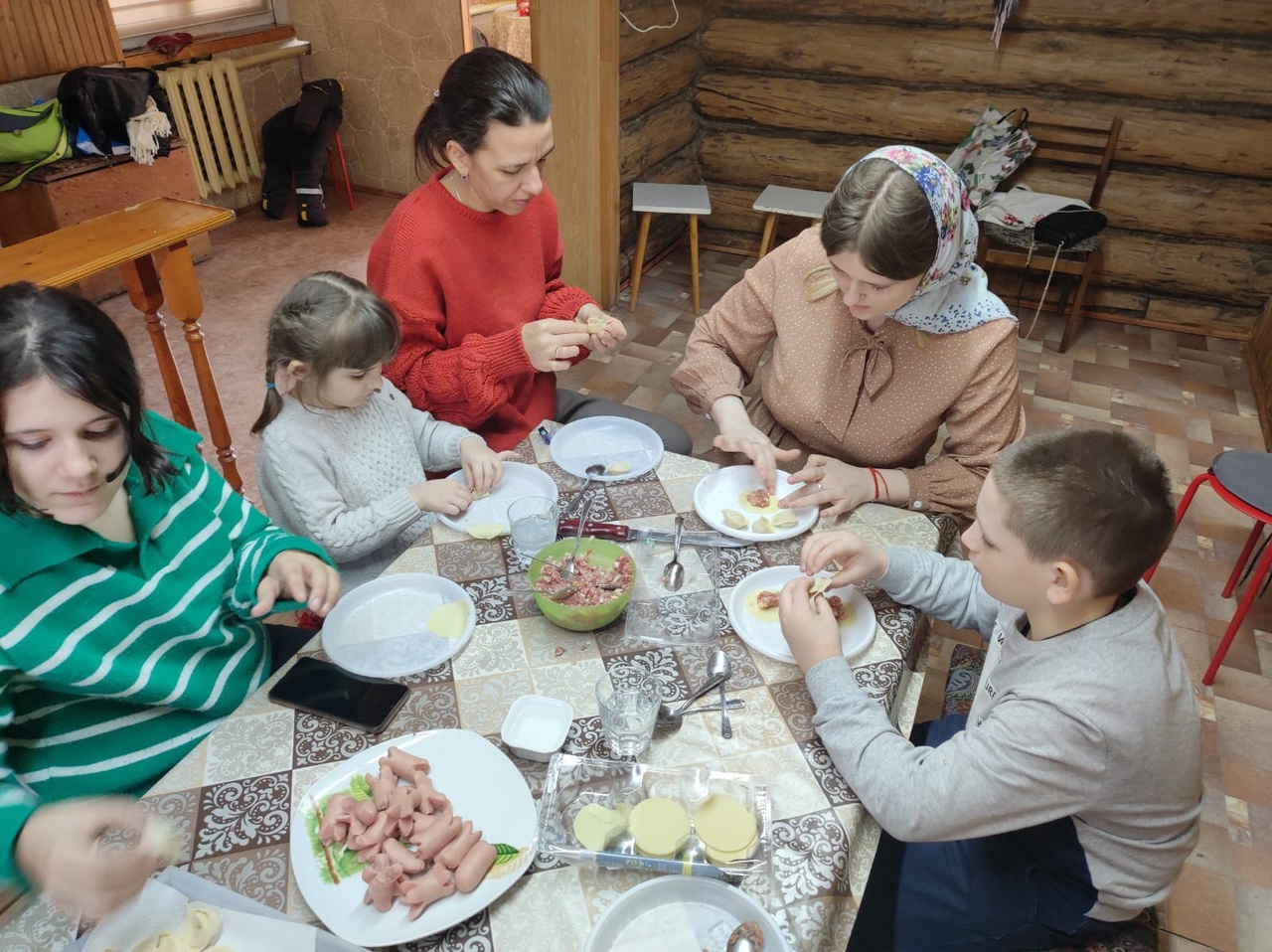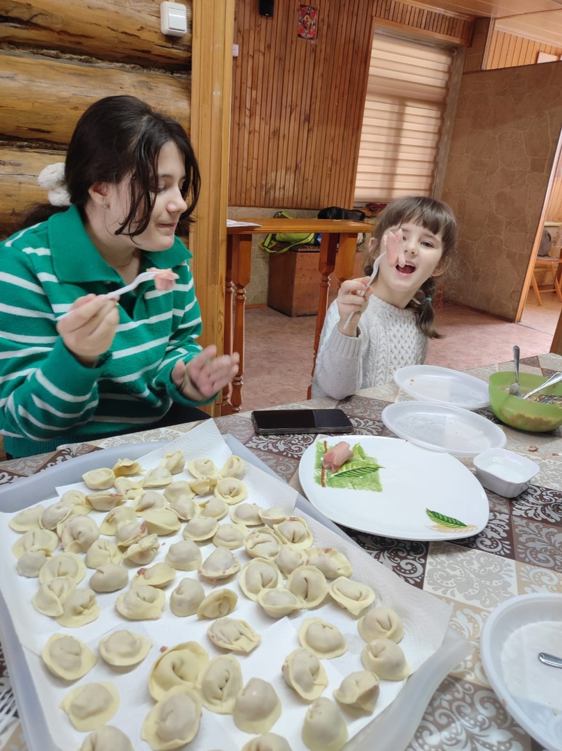 Вместе с детьми и родителями налепили пельменей.
