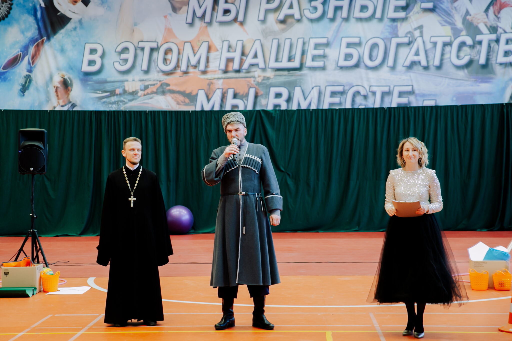 С приветственным словом к участникам и болельщикам обратился благочинный 1-го Бронницкого округа иерей Сергий Себелев и атаман Бронницкого хуторского казачьего общества Михаил Александрович Качнов.