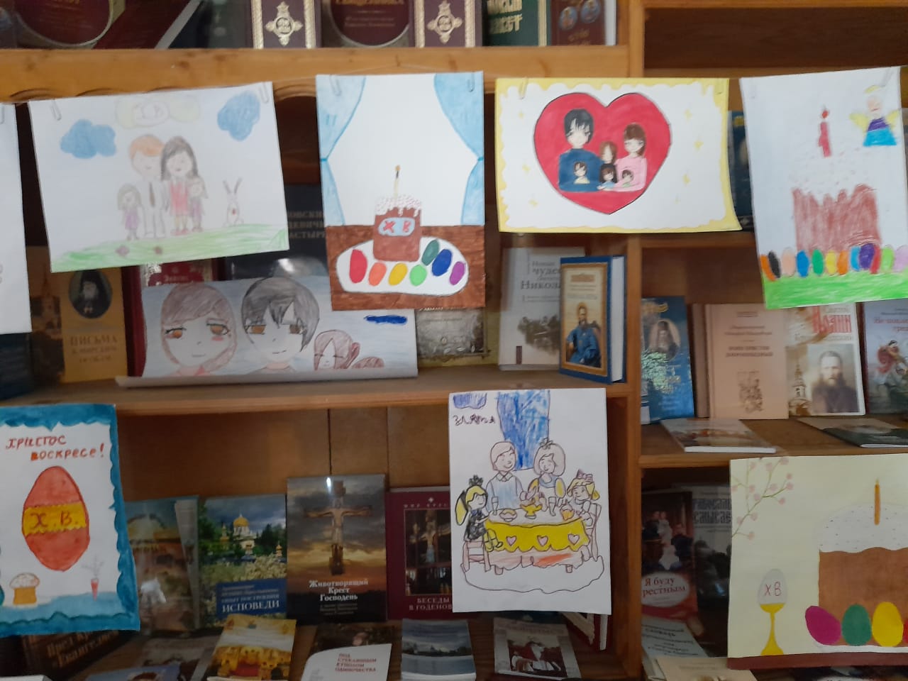 На выставке были представлены разнообразные творческие работы юных прихожан. Рисунки, объединенные общей пасхальной тематикой, получились достаточно разные: кто-то представил корзину с веточками вербы, кто-то — вкусное угощение — крашеные яйца и куличи, а кто-то любимую семью. Но абсолютно все ребята передали особое, радостное настроение, с которым люди встречают Светлое Христово Воскресение — Пасху.