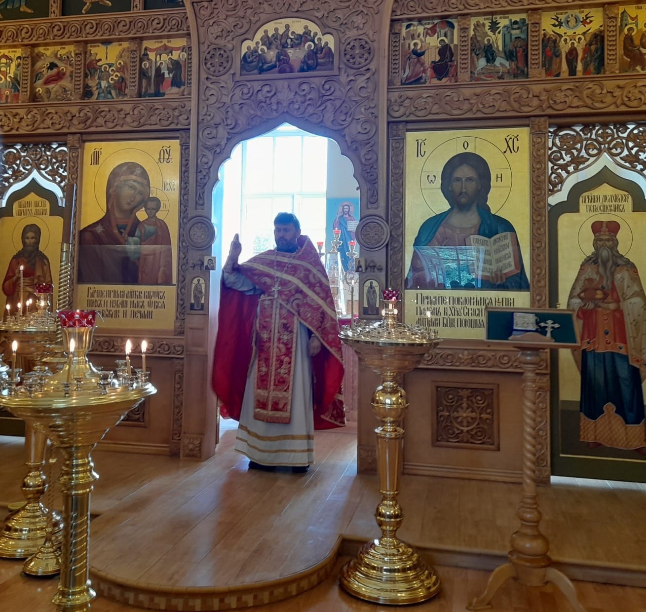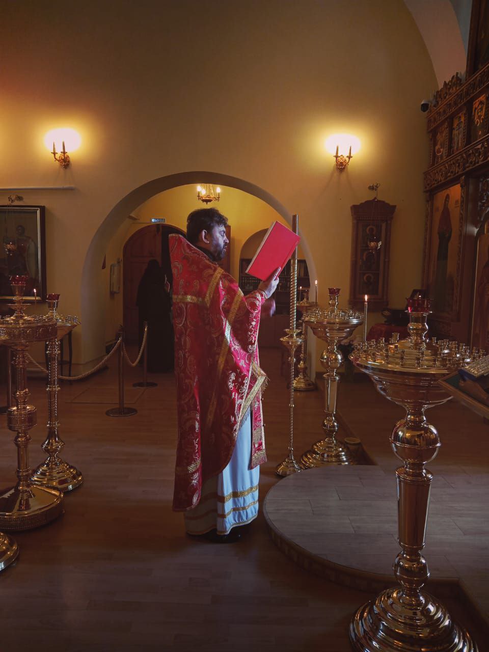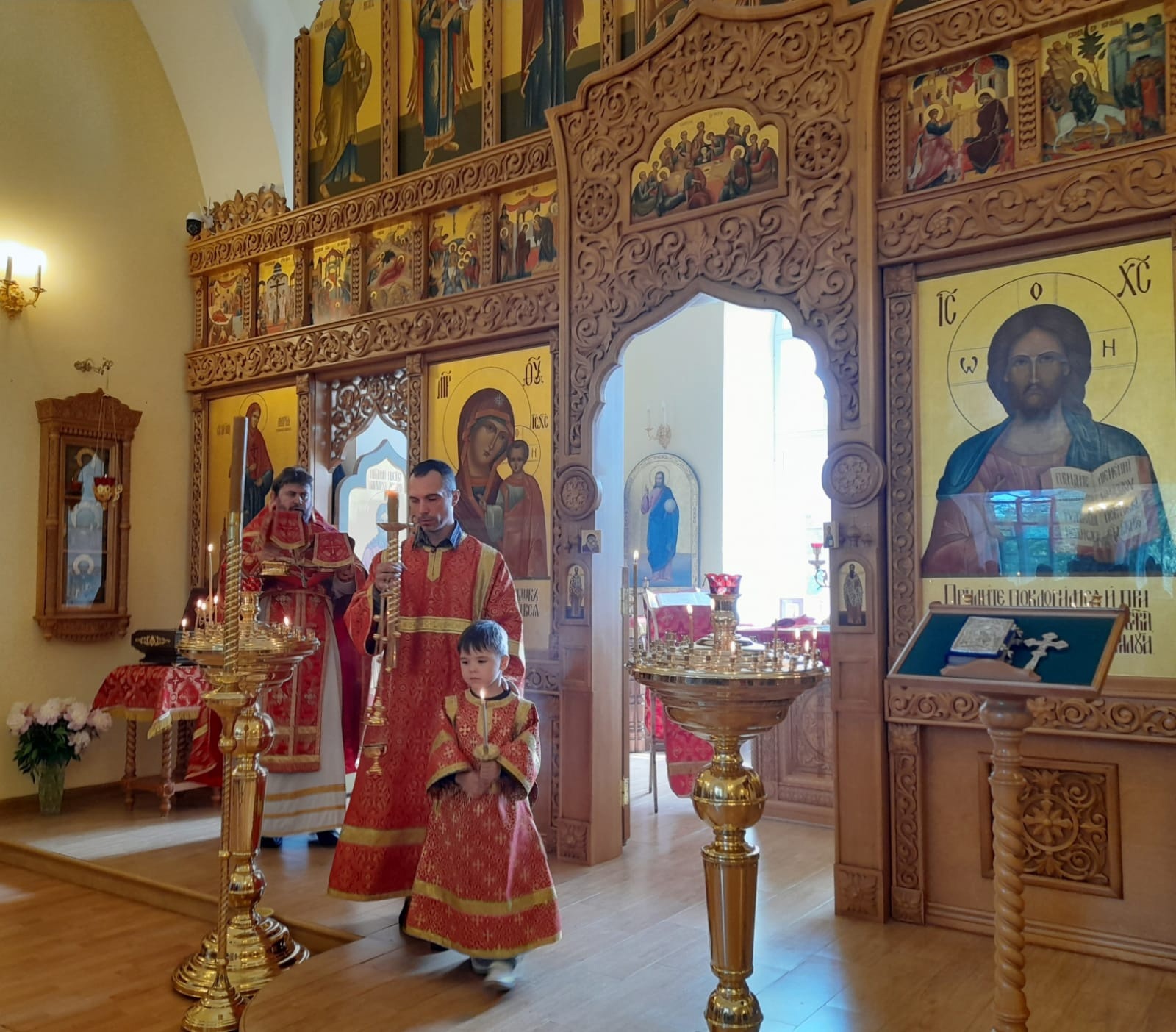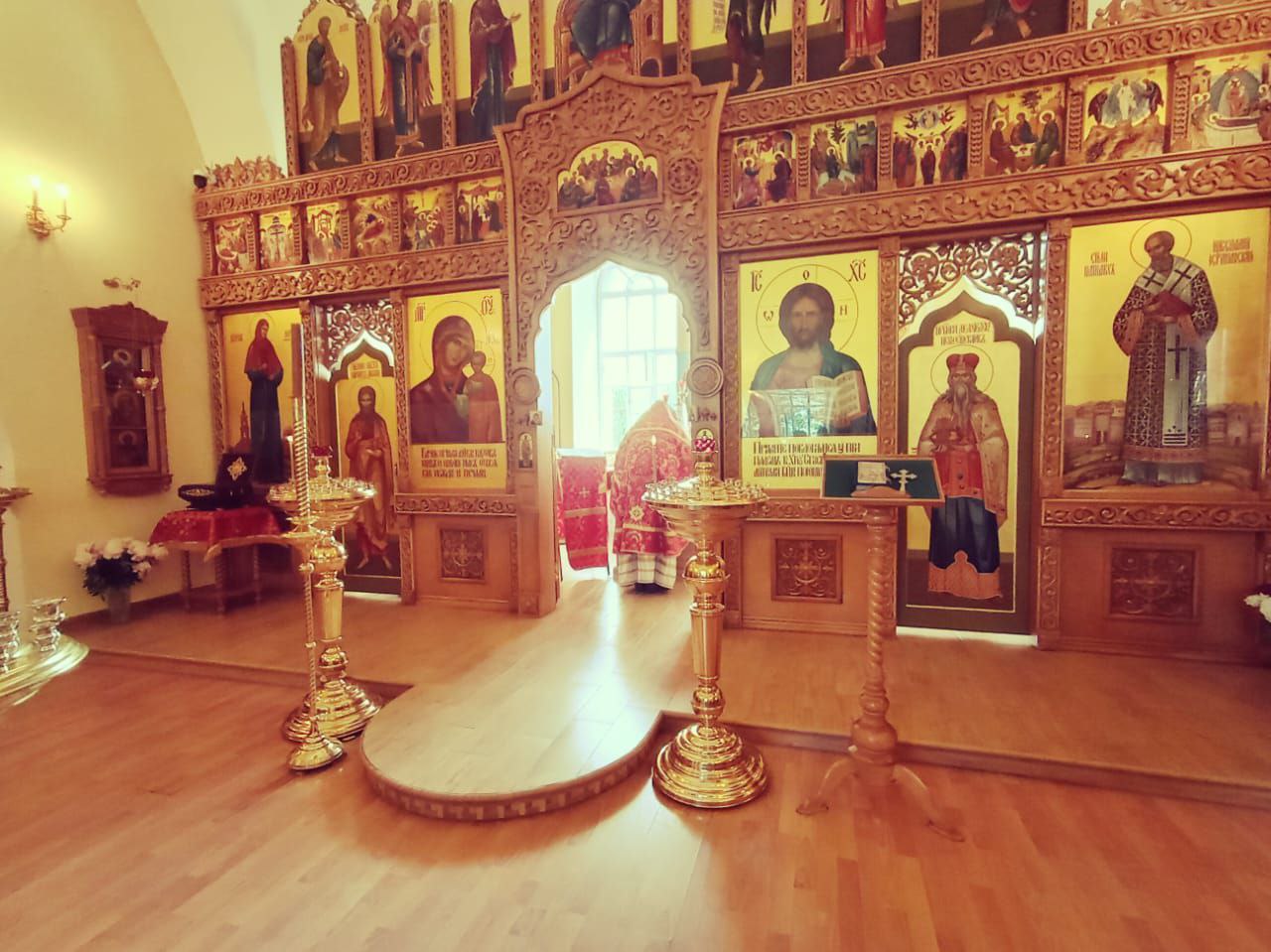 Паломники начали посещение обители с участия в Божественной литургии в надвратном храме святителя Ювеналия Иерусалимского.
