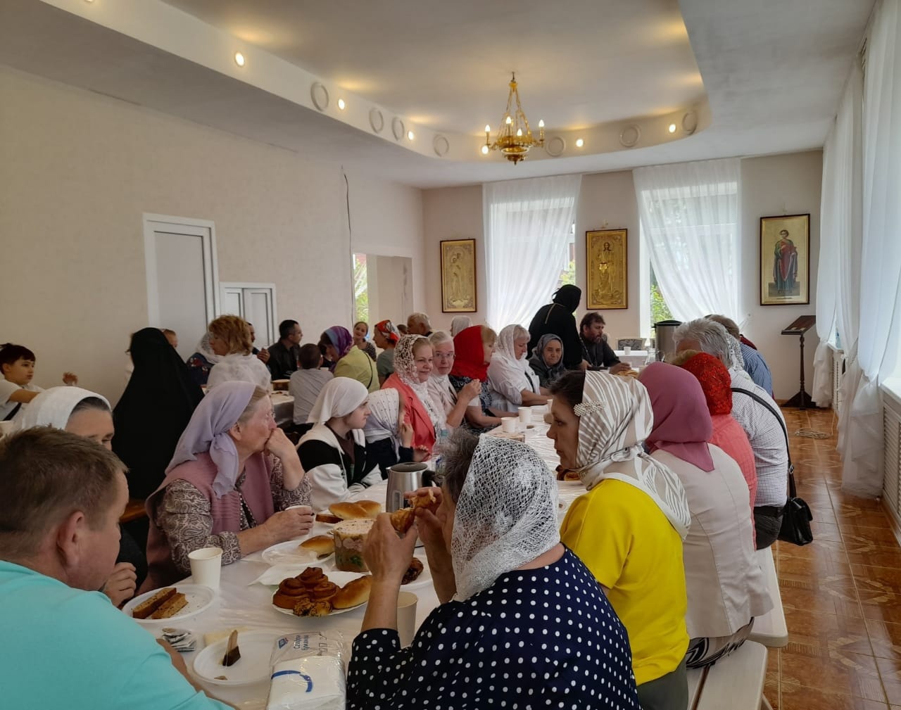 Завершилось посещение святыни чаепитием с выпечкой в монастырской трапезной.